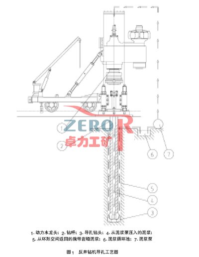 采用反井鉆機(jī)鉆進(jìn)導(dǎo)孔時,鉆頭破碎下來的巖屑是利用清水或泥漿直接沖出鉆孔。現(xiàn)已發(fā)表的研究成果表明,沉積在孔底0.5 - 5mm厚的鉆屑可將鉆進(jìn)速度降低40%左右,特別在斜井鉆進(jìn)中,巖屑受重力作用容易在鉆桿的下部聚集,會使直接接觸巖石底部的穩(wěn)定鉆桿受到向上托起力,使鉆孔發(fā)生向上的偏斜。