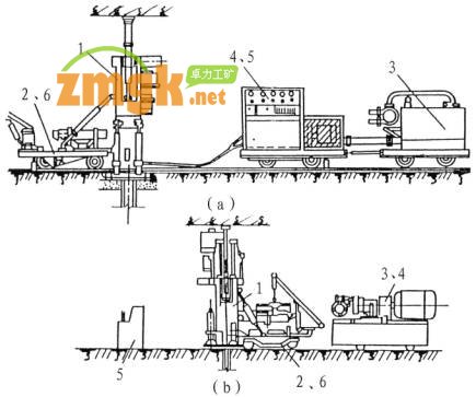 1-主機 2-搬運車 3-泵站 4-鉆具 5-主機基礎