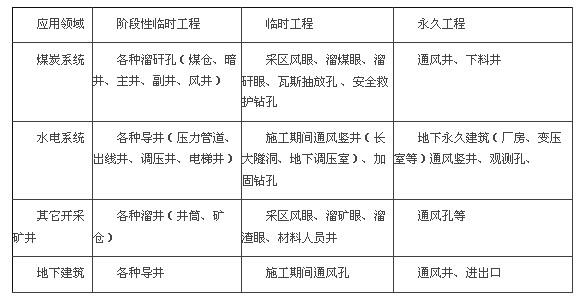 反井鉆機施工(也稱天井鉆機)施工主要用于地下井筒建設(shè)中。反井鉆機應(yīng)用范圍見下表: